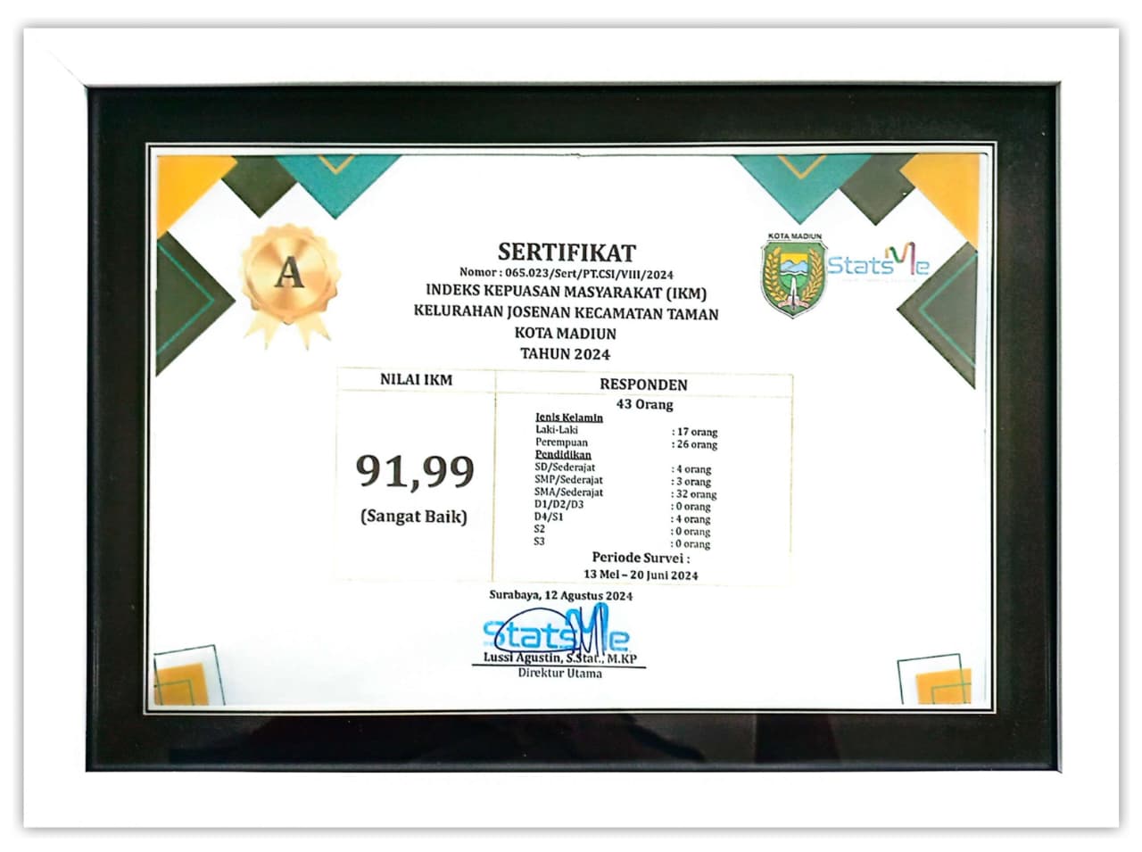 Indeks Kepuasan Masyarakat Kelurahan Josenan